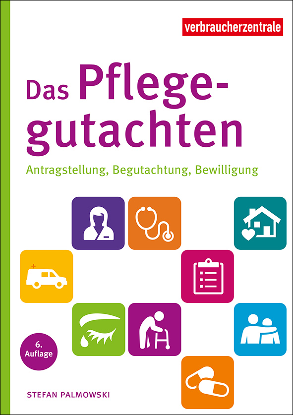 Titelbild des Ratgebers "Das Pflegegutachten"Wer Leistungen aus der Pflegeversicherung beantragen will, kommt um einen Besuch des Medizinischen Dienstes nicht herum. Ein Gutachter verschafft sich dabei einen Eindruck, wie selbstständig jemand seinen Alltag bewältigen kann und welche Hilfe benötigt wird. Die gute Vorbereitung auf die Erstbegutachtung ist also wichtig. Denn schließlich wird hiernach beurteilt, welcher Pflegegrad zusteht und wie viel Pflegegeld es beispielsweise gibt, um die häusliche Pflege durch Angehörige zu organisieren. Der aktualisierte Ratgeber „Das Pflegegutachten“ der Verbraucherzentrale begleitet vom Antrag übers Verfahren bis zur Bewilligung.